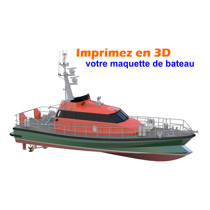 Pour un rendu optimal, utilisez une imprimante 3D filament (filament PETG) pour l'impression des blocs de structure et une imprimante résine pour les petites pièces d'accastillage.