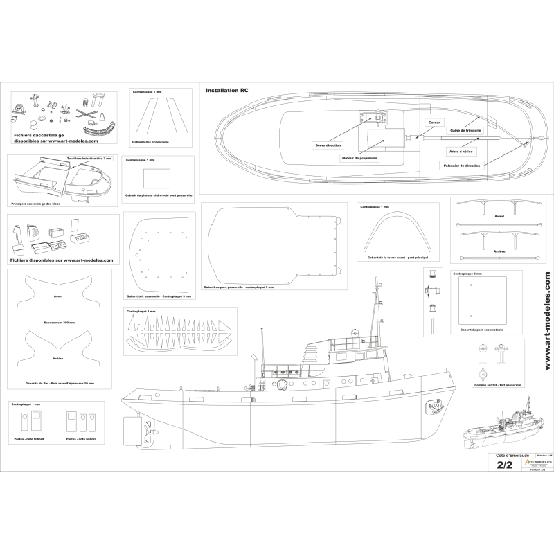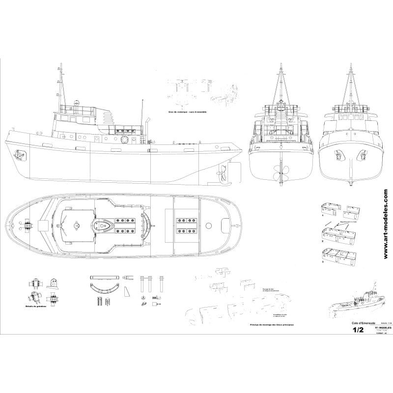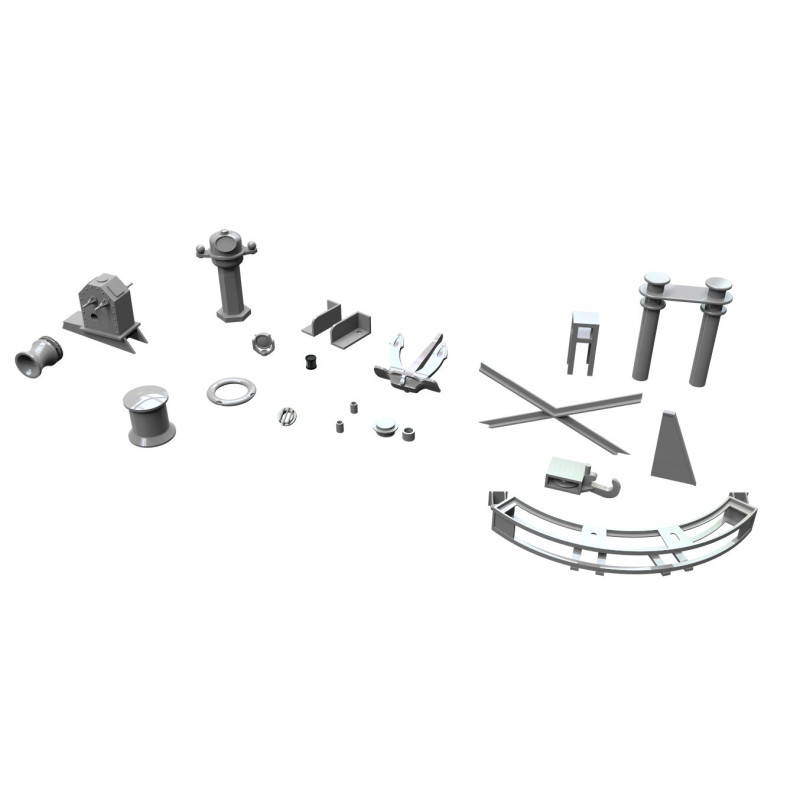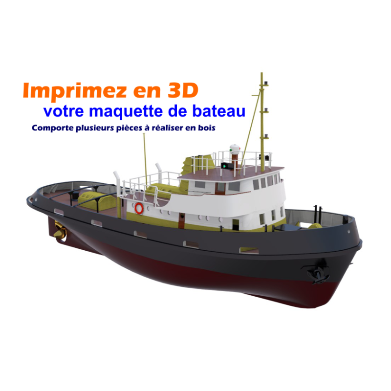 Pour un rendu optimal, utilisez une imprimante 3D filament (filament PETG) pour l'impression des blocs de structure et une imprimante résine pour les petites pièces d'accastillage.