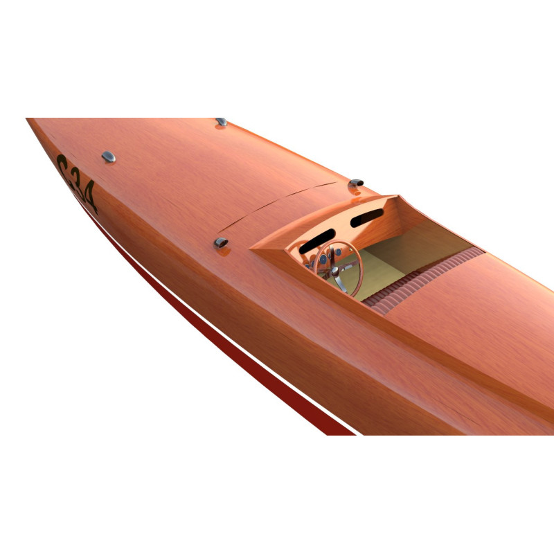 BOOMERANG est un runabout assez emblématique des années 30. Son design très particulier et largement identifiable, s’inspire des flotteurs d’hydravions de cette époque. Il est également la réplique assez fidèle du premier canot dessiné par George Crouch. En effet, BABYBOOTLEGGER fut le canot qui initia ce style novateur pour l’époque, dès 1924.