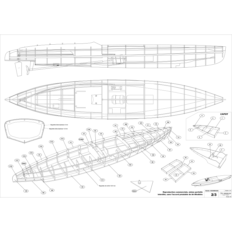 Echelle : 1/10- LONG : 1140 mm - largeur : 210 mm