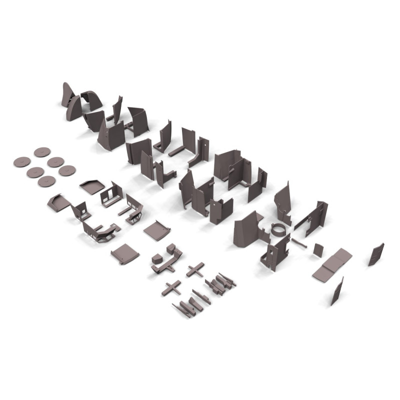 Pour un rendu optimal, utilisez une imprimante 3D filament (filament PETG) pour l'impression des blocs de structure et une imprimante résine pour les petites pièces d'accastillage.
