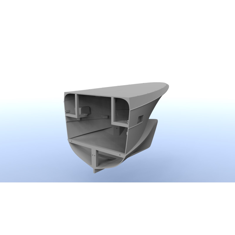 Pour un rendu optimal, utilisez une imprimante 3D filament (filament PETG) pour l'impression des blocs de structure et une imprimante résine pour les petites pièces d'accastillage.
