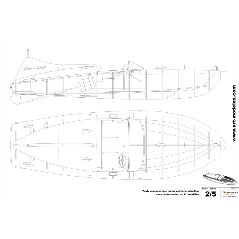 Canot automobile est proposé au catalogue à partir de 1955. Très inspiré des Corvette des années 50, il est équipé de son célèbre "Oeuf" en fibre de verre, une vraie nouveauté pour l'époque. Cobra sera proposé en deux versions : 18 et 21 pieds. Il partage son accastillage avec le Capri.