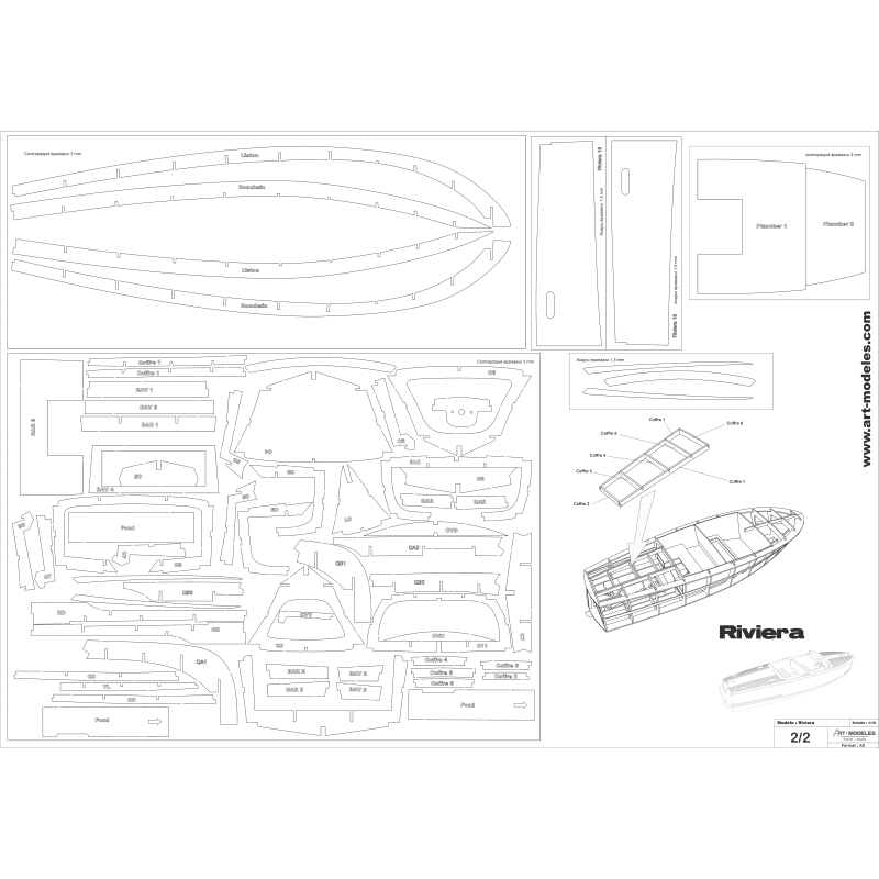 Le modèle Riviera apparait en 1947 et sera proposé en trois versions : 16,18 et 20 pieds. Il sera remplacé en 1955, par le Capri. La construction de ce runabout ne pose pas de difficulté importante. Il est construit en contreplaqué avec un double bordé. Ce qui assure une très grande solidité et une légèreté remarquable.